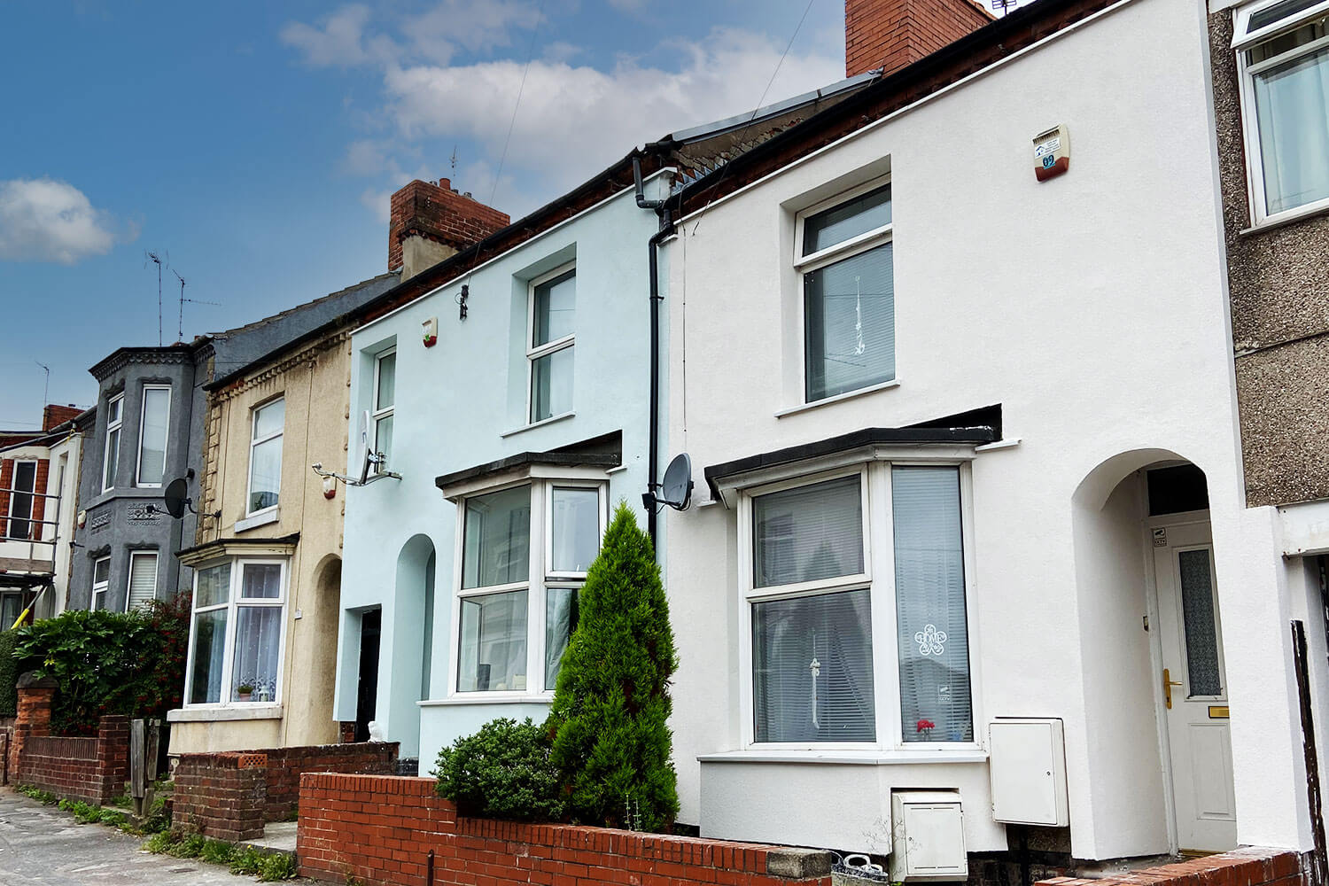 Following the appointment of Westville, work commenced with the scaffolding first erected in November 2020. The scope of the project involved applying Permarock 90mm eps and finishing the houses with a 1.5mm textured finish to over 42 properties of all shapes and sizes. Working during the terrible winter weather with no place for parking on the narrow streets, Westville decided to set up the compound in a local car park around the corner to alleviate traffic and dirt issues.
