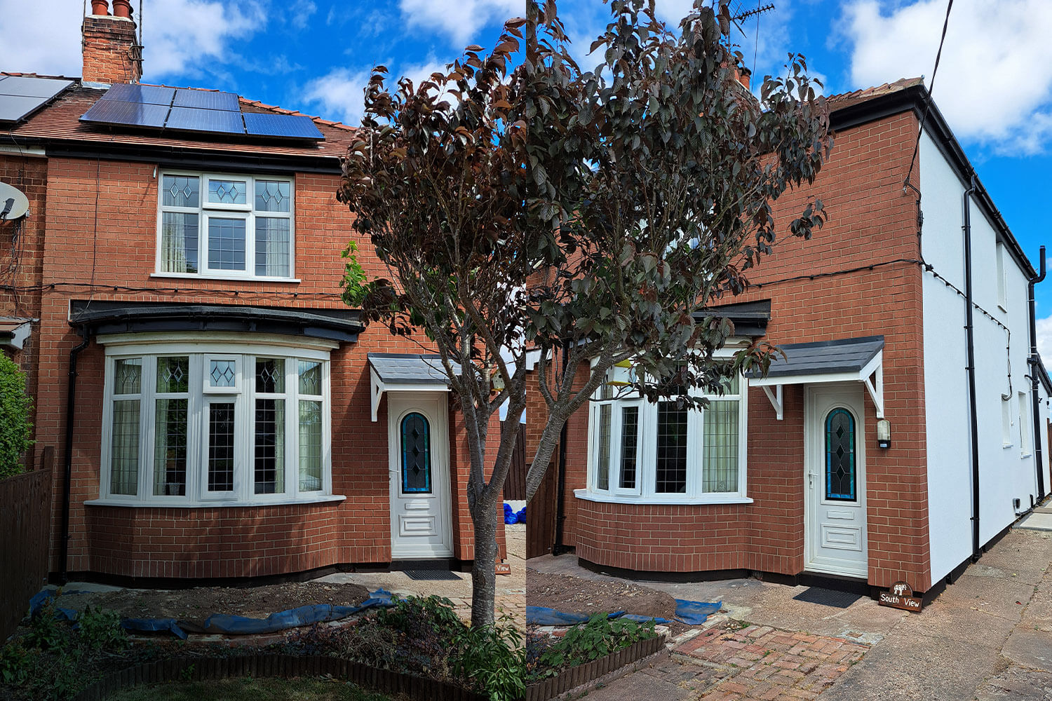 External Wall Insulation, Two-tone Render & Brick Slips, Guttering, Soffits & Fascias, Ventilation and Porch Canopy